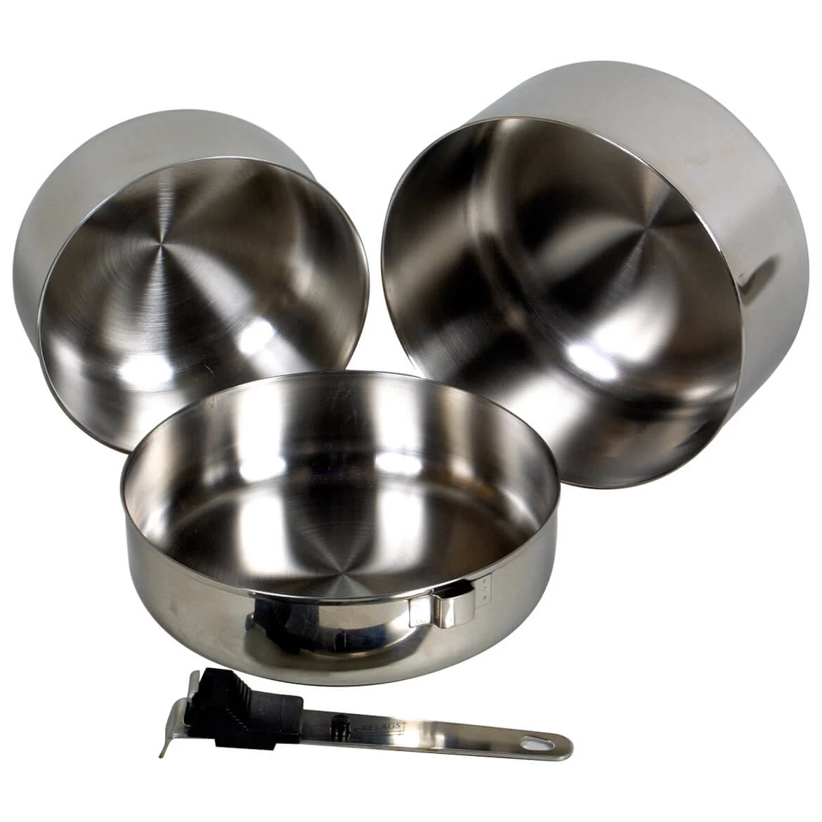 1 – 2 man cook set for camping or trekking. With ABS handle.
