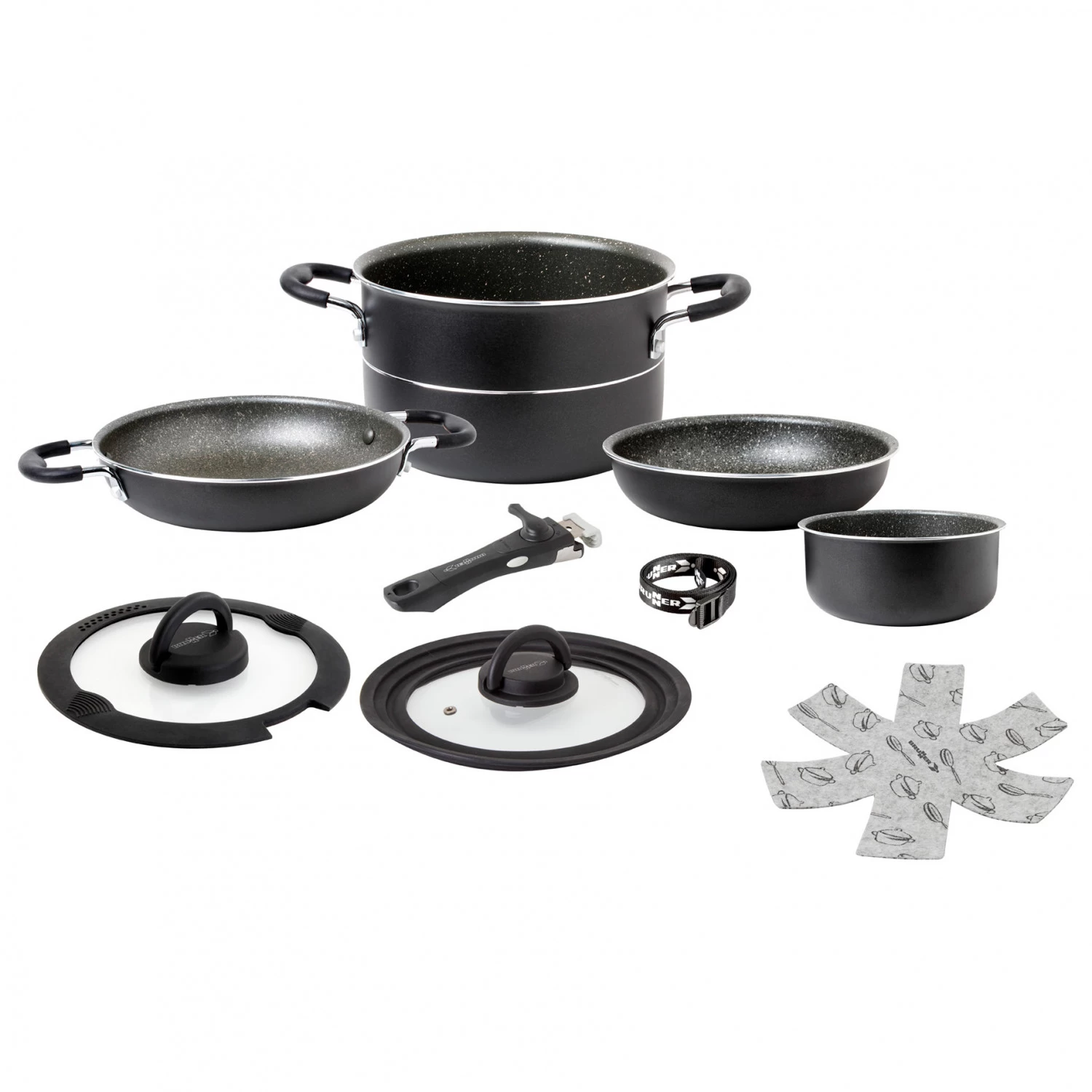 | Leveringsomfang | 2 gryder; 2 pander; 2 låg; 1 greb; 1 fastsurringsrem |
